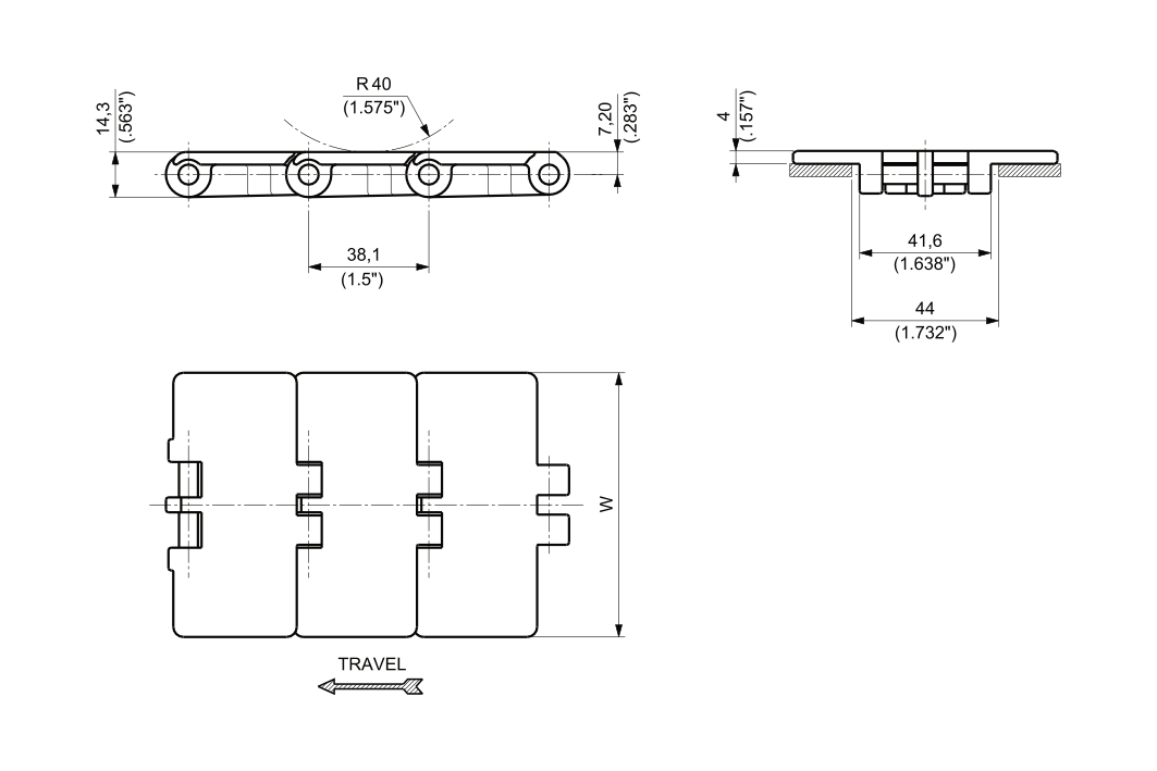820 Series: Single Hinge Straight Running Chain